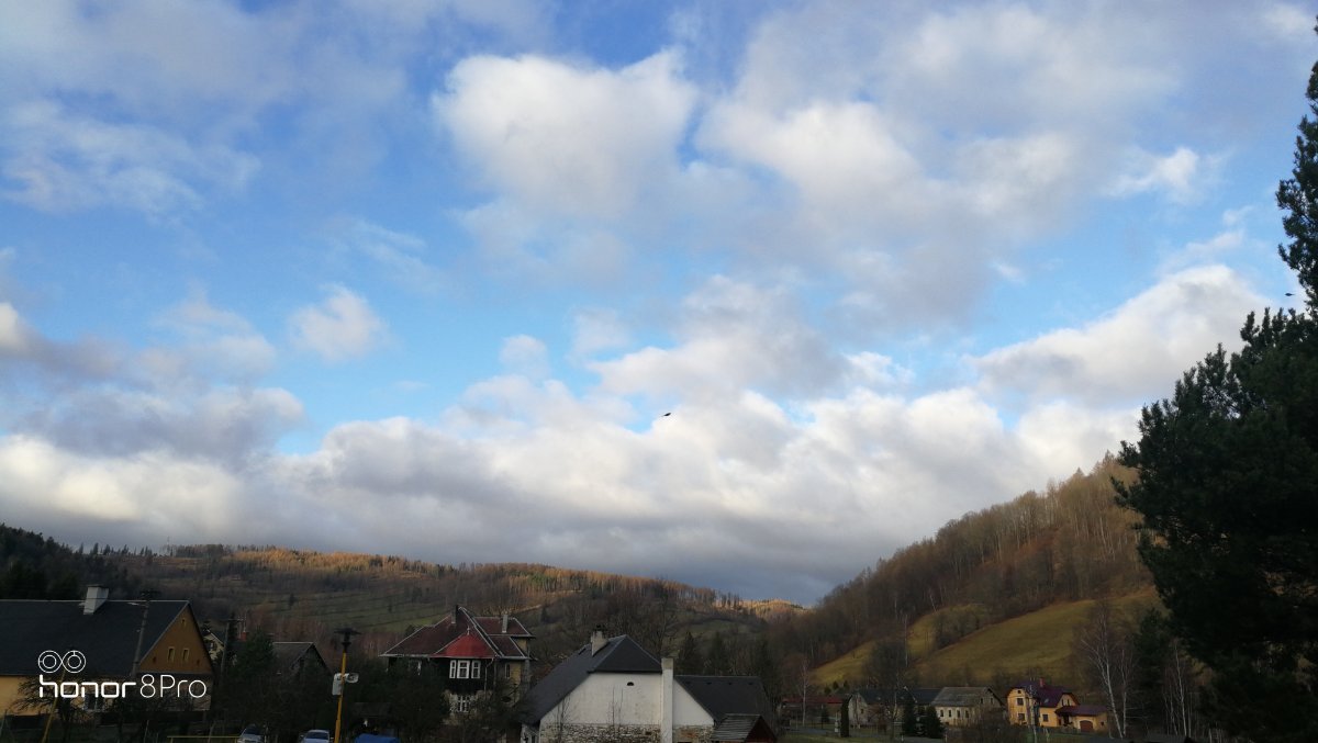 dnešní východ slunce nad obzor a první sněhový poprašek
