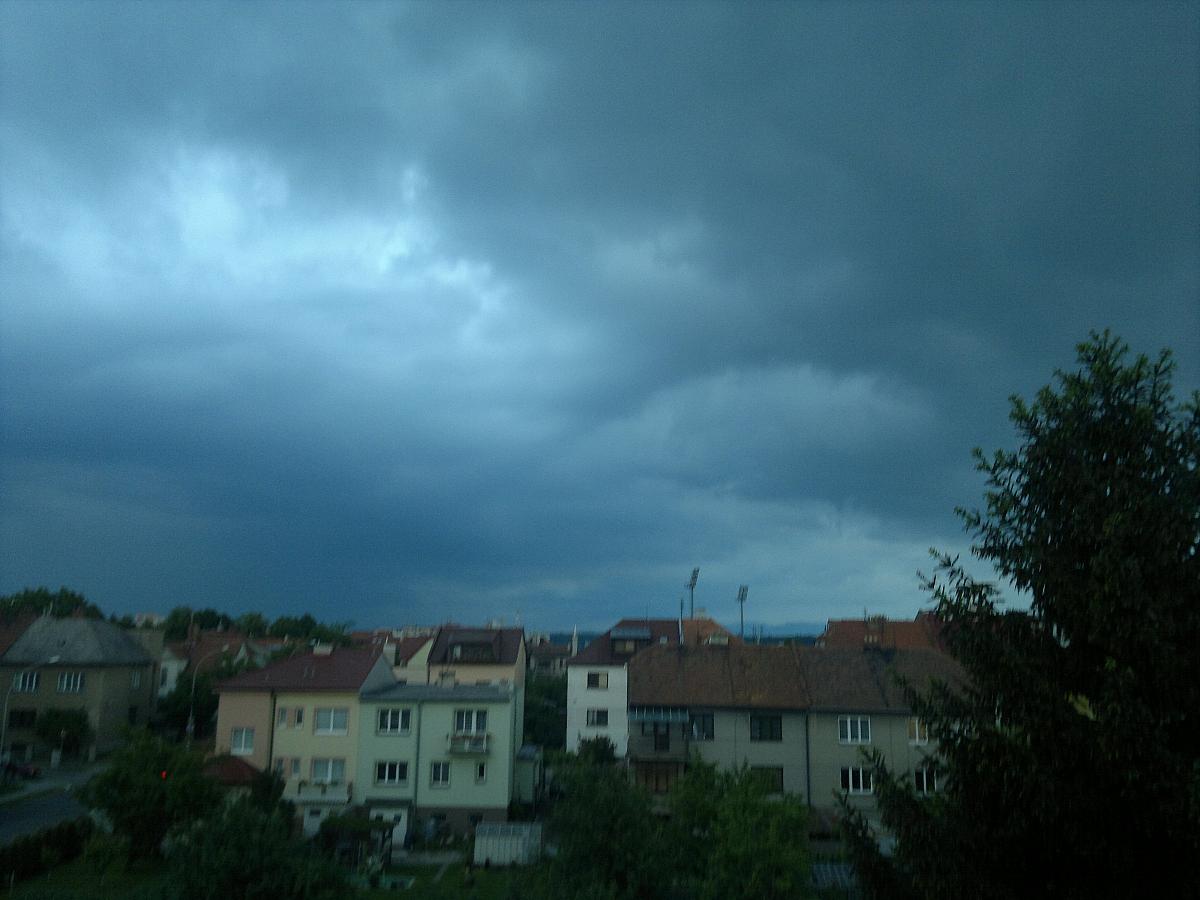 foto z 2013 05 25 v 19:45 sluníčko k večeru zase vylezlo - střídalo se to tady odpoledne i s deštěm - posvítilo si na hasiče, kteří oslavují své vítězství v soutěži - tlak 758