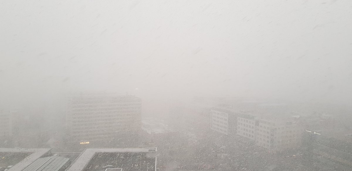 Mrznoucí mlha. Jihovýchodní vítr 4,7 km/h, tlak 988,8 hPa, vlhkost 99 %. Dnešní maximum bylo -1,5 °C.