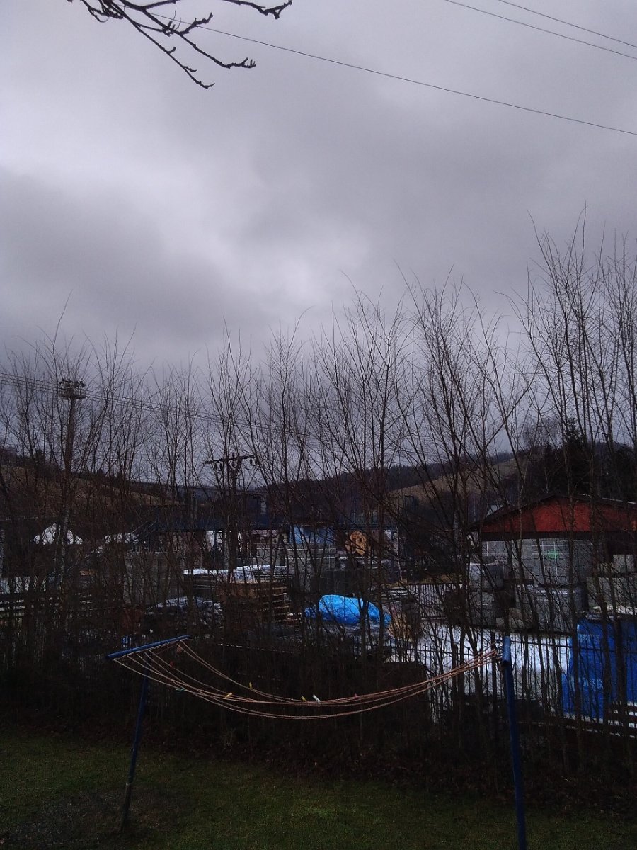 slabě prší, východ slunce
