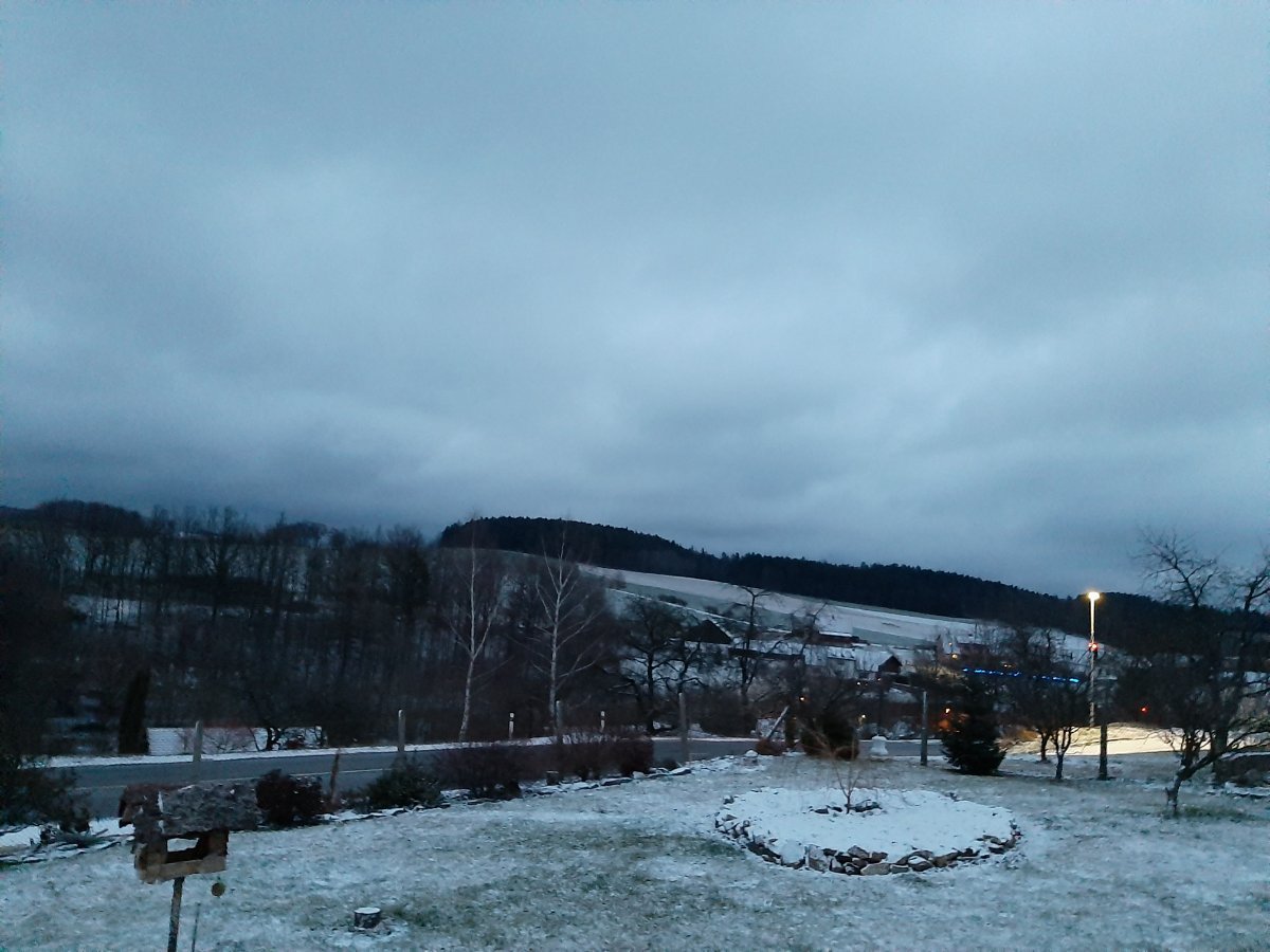 Zamračené, mierne sneženie.