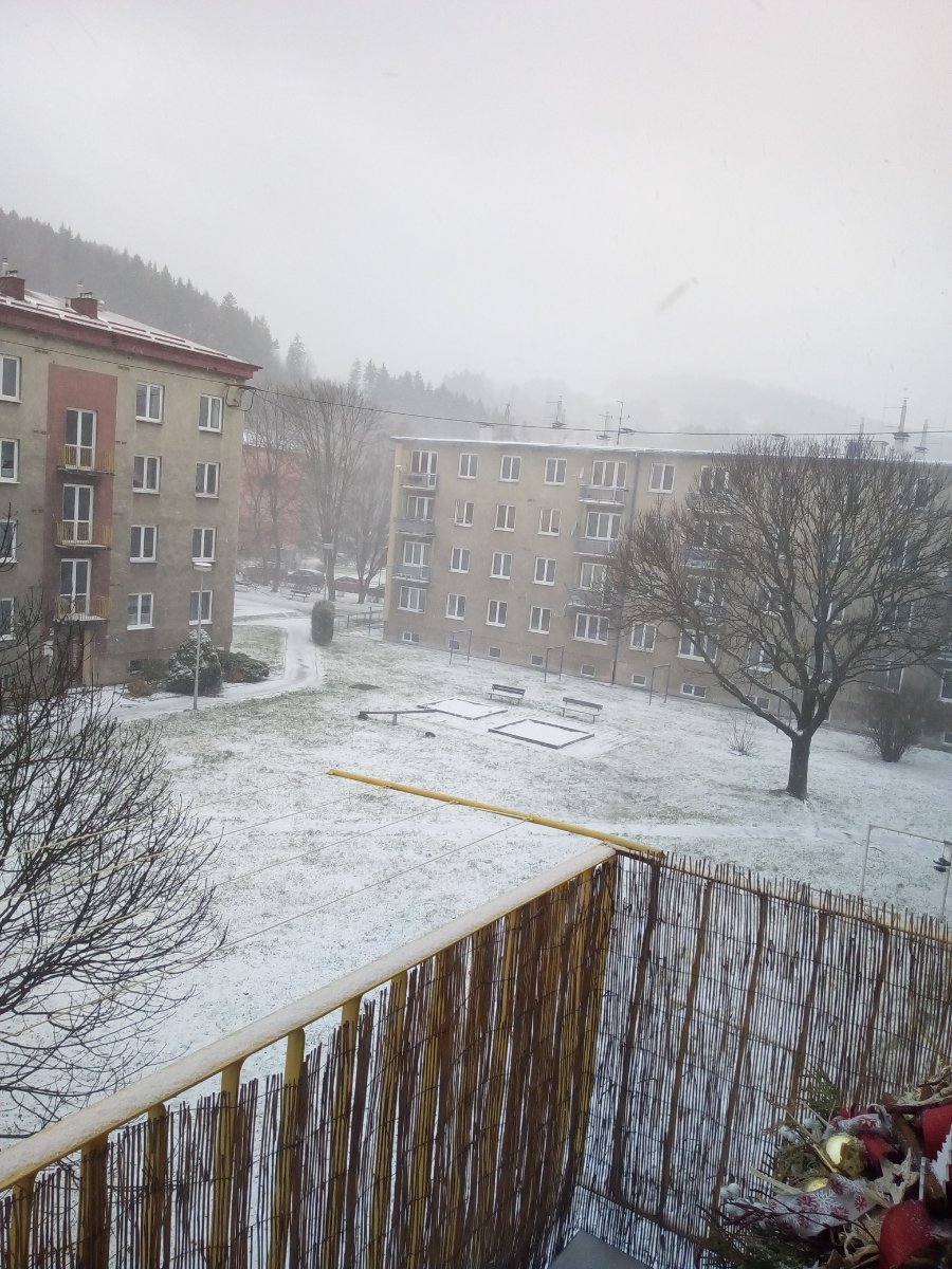 Aktuálně převažuje většinou skoro zataženo až oblačno a slabě sněží a fouká většinou slabý občas až mírný chladný vítr vlhkost 99%