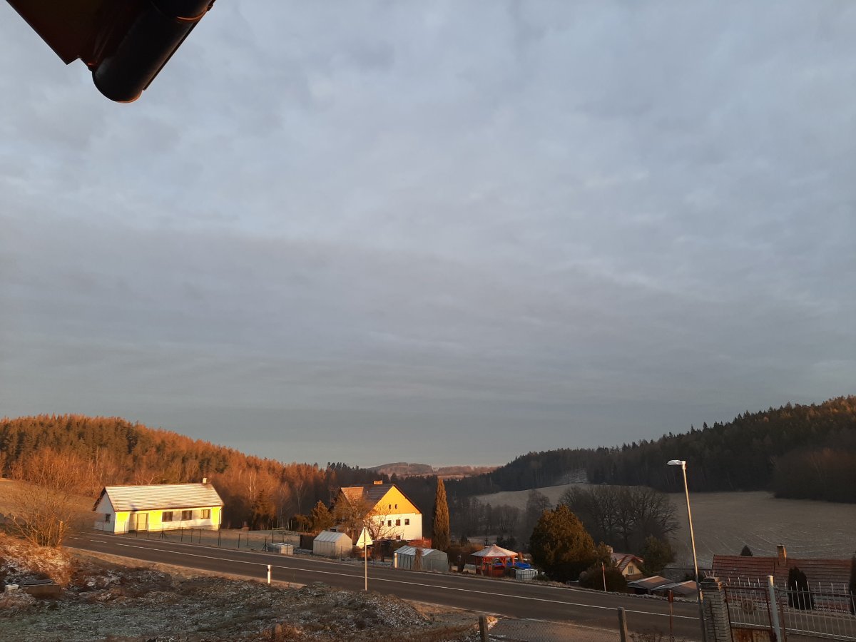 20km od Třebíče směr Brno panuje krásné zimní počasí, -5.5°C