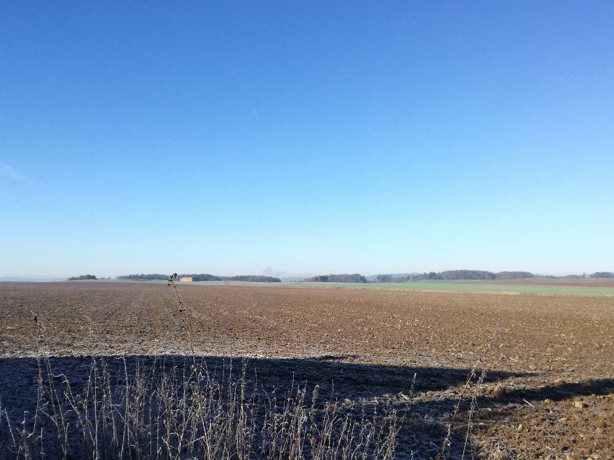 Na sluníčku pozvolna tají okna aut i šedivák na trávě, zcela jasno, bezvětří....