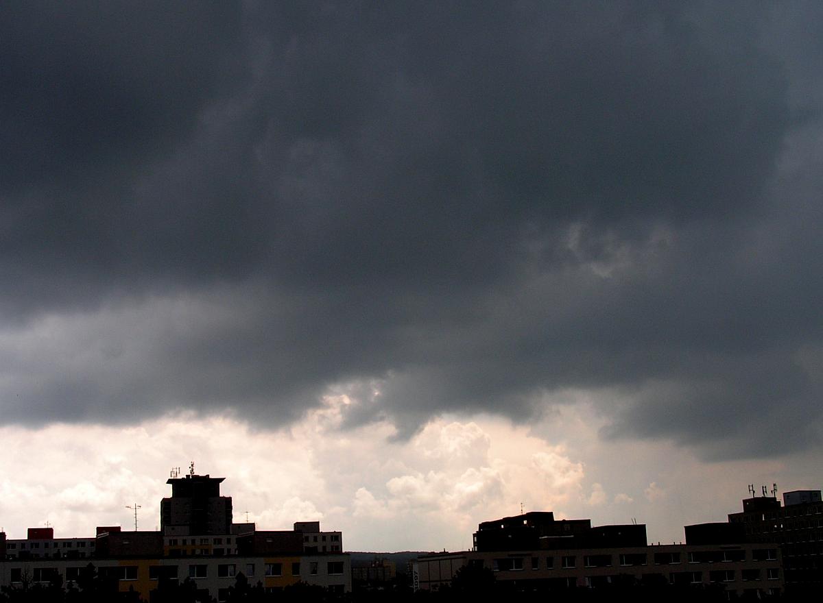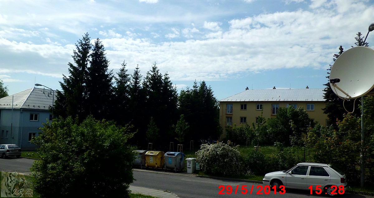 Slabší bouřka, déšť. Na fotografii formující se "tornádo". Jev trval cca 3 min, poté trychtýř zanikl.