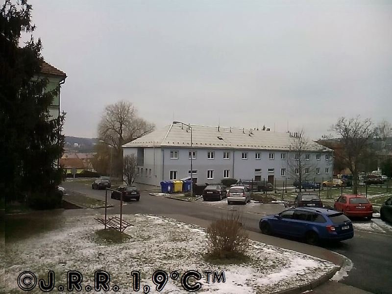 Oblačno s mírným J větrem. Tlak 1027 hPa, vlhkost 80%, vítr J 2,7 km/hod.