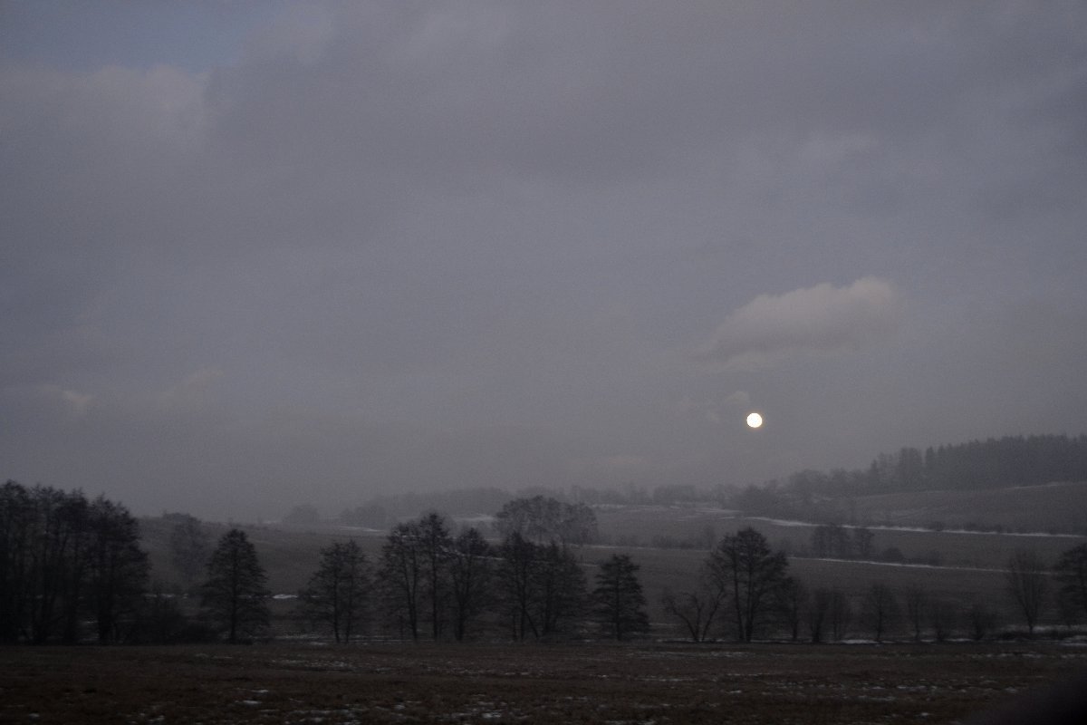 hustá mlha, teplota pozvolna klesá, 0.5°C