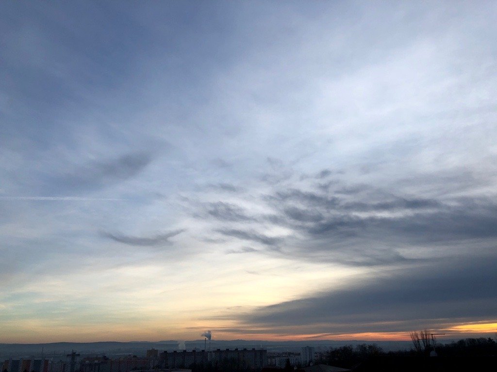 Ranní silný přízemní mrazík poměrně brzy zdolalo hodně prosluněné dopoledne, postupné přibývání oblačnosti na současných 8/10, přes den jen slabý, občasný větřík nyní klidno...