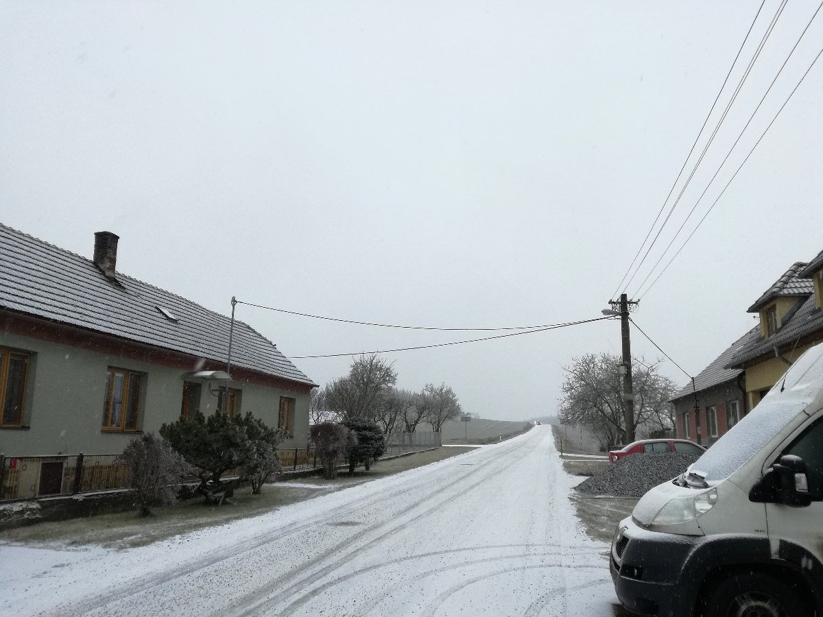 Trvale sněží ale začíná to tát. Je bezvětří.