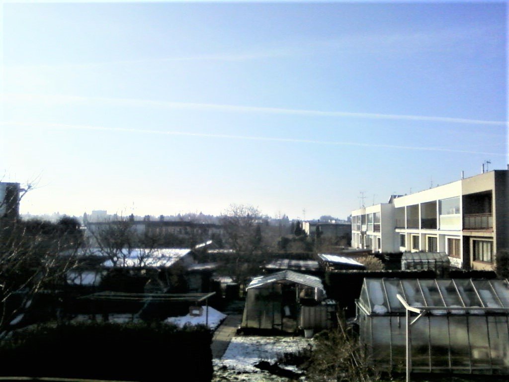 Na sluníčku taje ranní námraza, zcela jasno, jen kondenzační letadlí čmáranice, bezvětří....