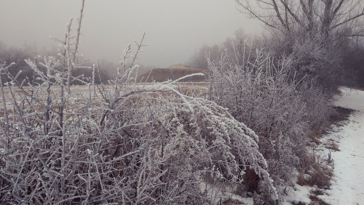 mrznoucí mlha, nad Borovinou námraza, -2°C
