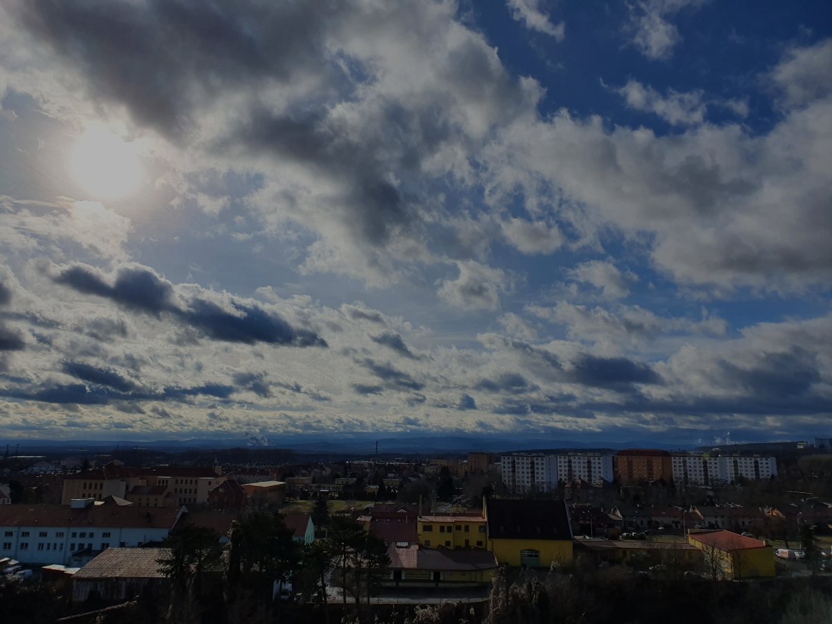 Oblačno až zataženo. Severní vítr 29,5 km/h, tlak 1010 hPa, vlhkost 76 %. Dnešní minimum bylo -1,8 °C.