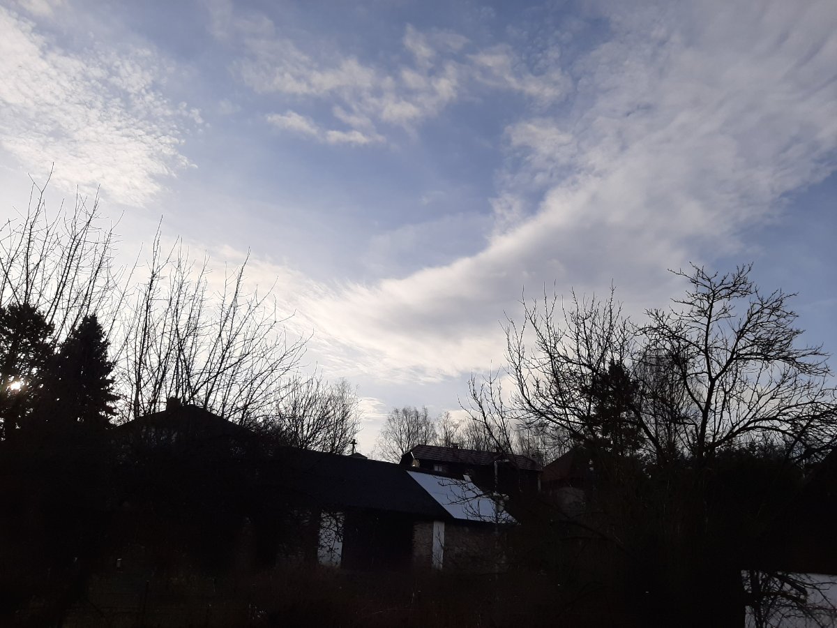 Oblačnost 98,7%, tlak 1013,67hPa→, poc.teplota -0,37°C, tepl.ros.bodu 2,13°C, rel.vlhkost 97,4%, abs.vlhkost 5,60g/m3, Z větřík 276° 1,77m/s(2 Bft), ozon 283,6D.U., AQI 23/velmi dobrá kvalita ovzduší), světlo = 2096 lx, včerejší průměrná teplota = 3,83°C.