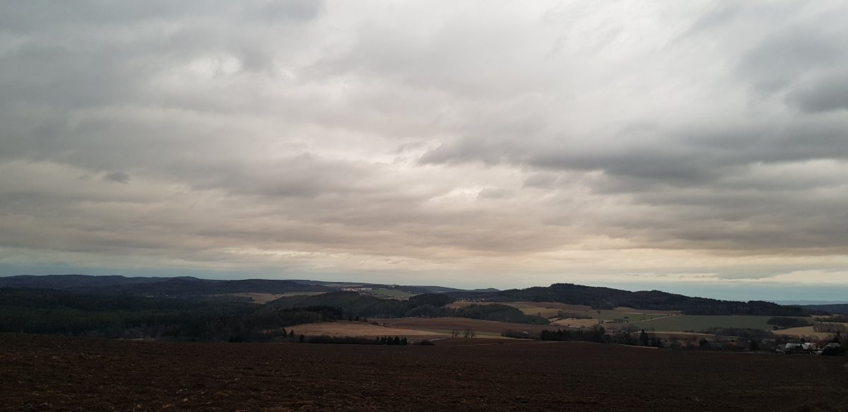 Dopoledne ještě protrhaná nízká oblačnost s vysokou nad ní, a chvilkově i sluníčko, odpolední mžení nyní přešlo ve vytrvalý déšť, silný nárazový vítr po celý den...