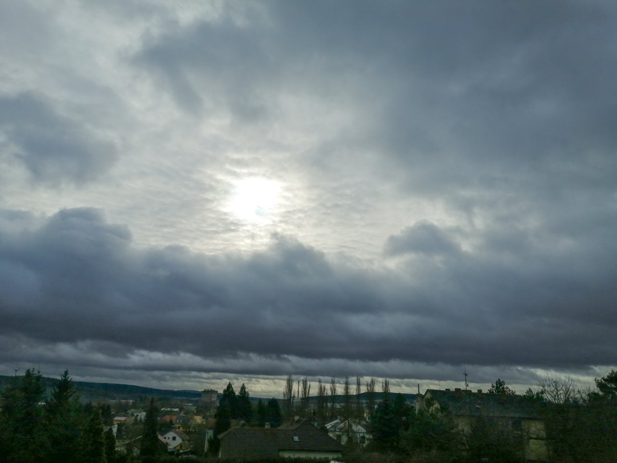Po trvalém dešti. Mírný vítr. Protrhávání oblačnosti od SZ.
