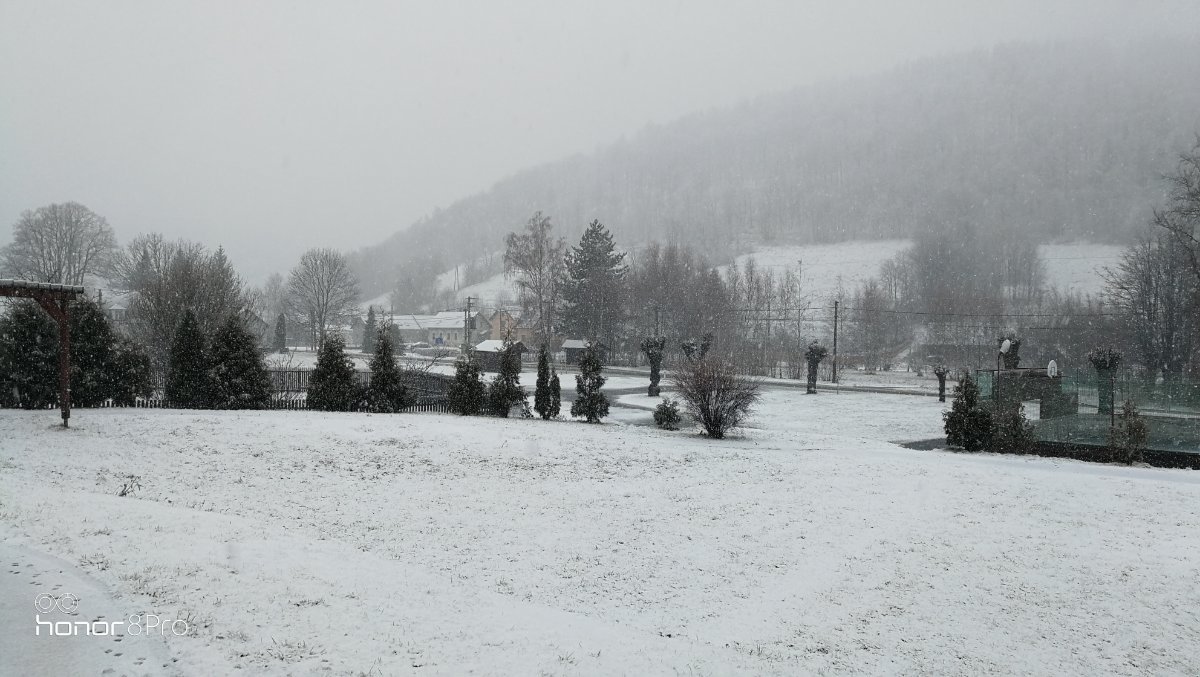 Zamračené, silné sneženie, za 13 h - 24 mm zrážok.