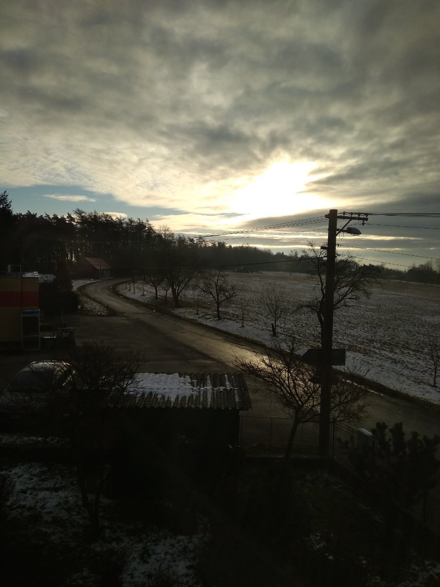 Slabounké sněhové přeháňky. Zmrzlý sníh 3-5cm.