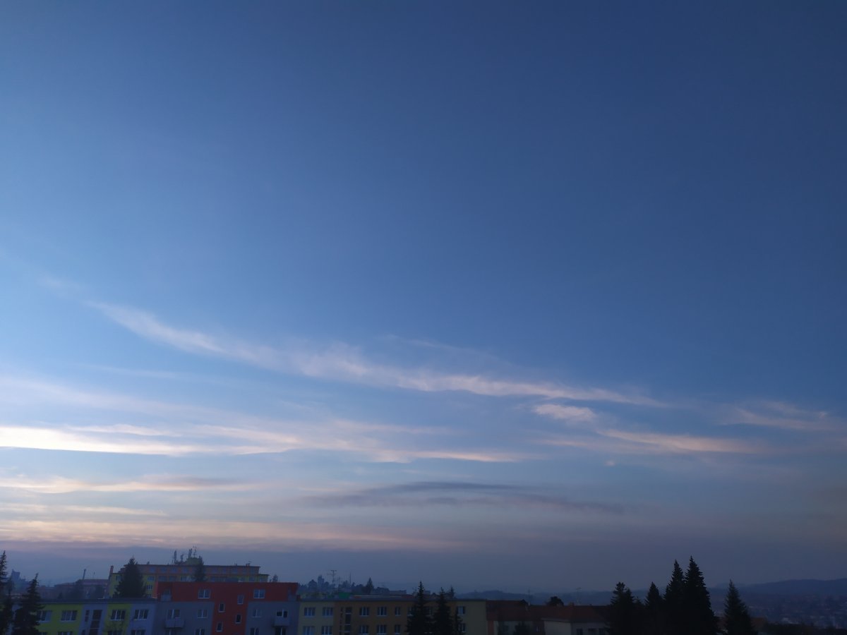 Ráno jasno, dopoledne na sluníčku teplíčko, odpoledne přibývání vysoké oblačnosti, zvedající se nárazový vítr a prudce klesající barometr..