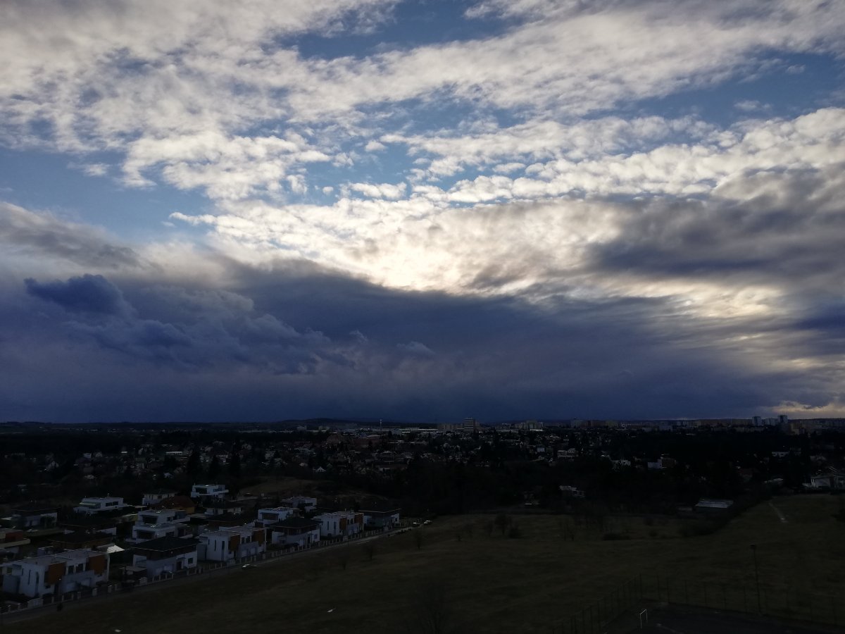 Aktuálně převažuje většinou skoro jasno a fouká většinou slabý až mírný vítr a padaly kroupy! Dokonce je na trávě bílo vlhkost 99%