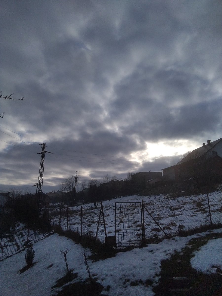 Mlha, oblačnost 33,4%, tlak 1029,23hPa→, poc.teplota -2,67°C, tepl.ros.bodu -1,07°C, rel.vlhkost 95,2%, abs.vlhkost 4,48g/m3, SSZ vánek 347° 0,76m/s(1 Bft), ozon 340,4D.U., AQI 59(mírné znečištění ovzduší), světlo = 3345 lx, včerejší průměrná teplota = 5,34°C.
