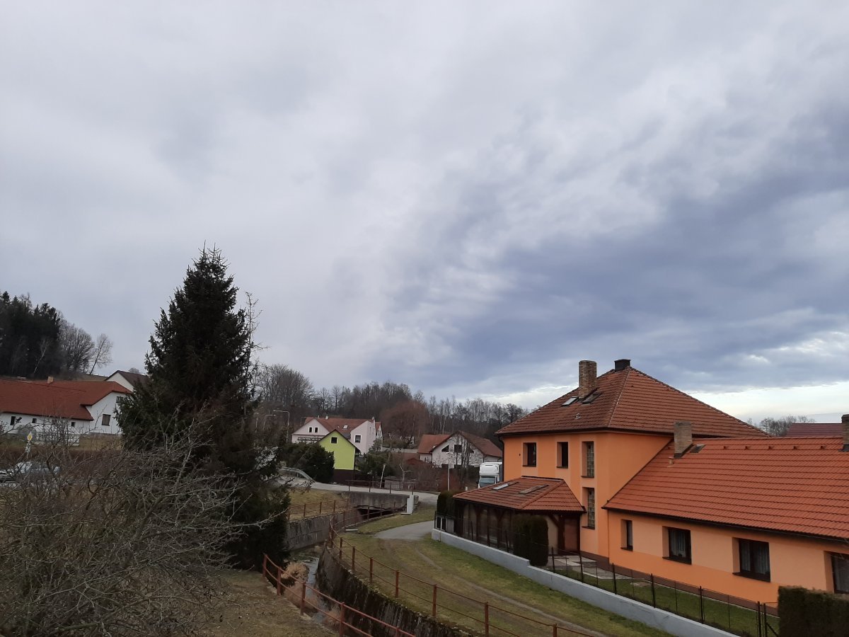 Oblačnost 98,1%, tlak 1023,62hPa↓, poc.teplota 2,01°C, tepl.ros.bodu 2,35°C, rel.vlhkost 68,8%, abs.vlhkost 5,58g/m3, mírný JZ vítr 224° 5,77m/s(4 Bft), ozon 292,5D.U., AQI 34(dobrá kvalita ovzduší), světlo = 1773 lx.