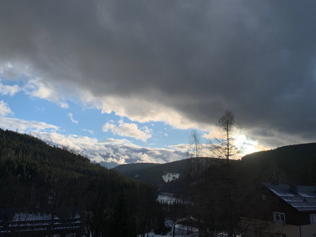 Rychle plynoucí proměnlivá oblačnost, silnější nárazový vítr, sem tam menší přeprška, sem tam sluníčko mezi mraky...