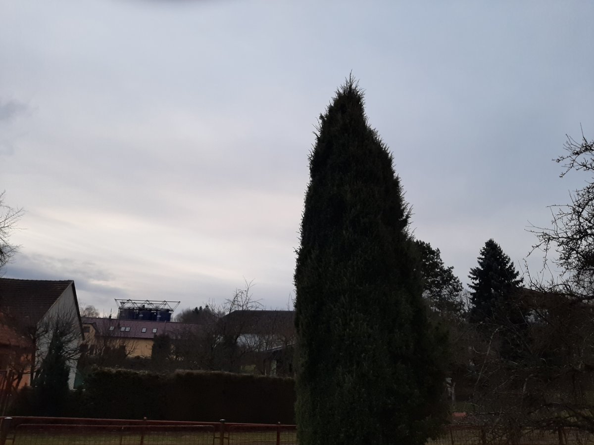 Skoro zamračené, prechodne oblačno, slabunká snehová prehánka.