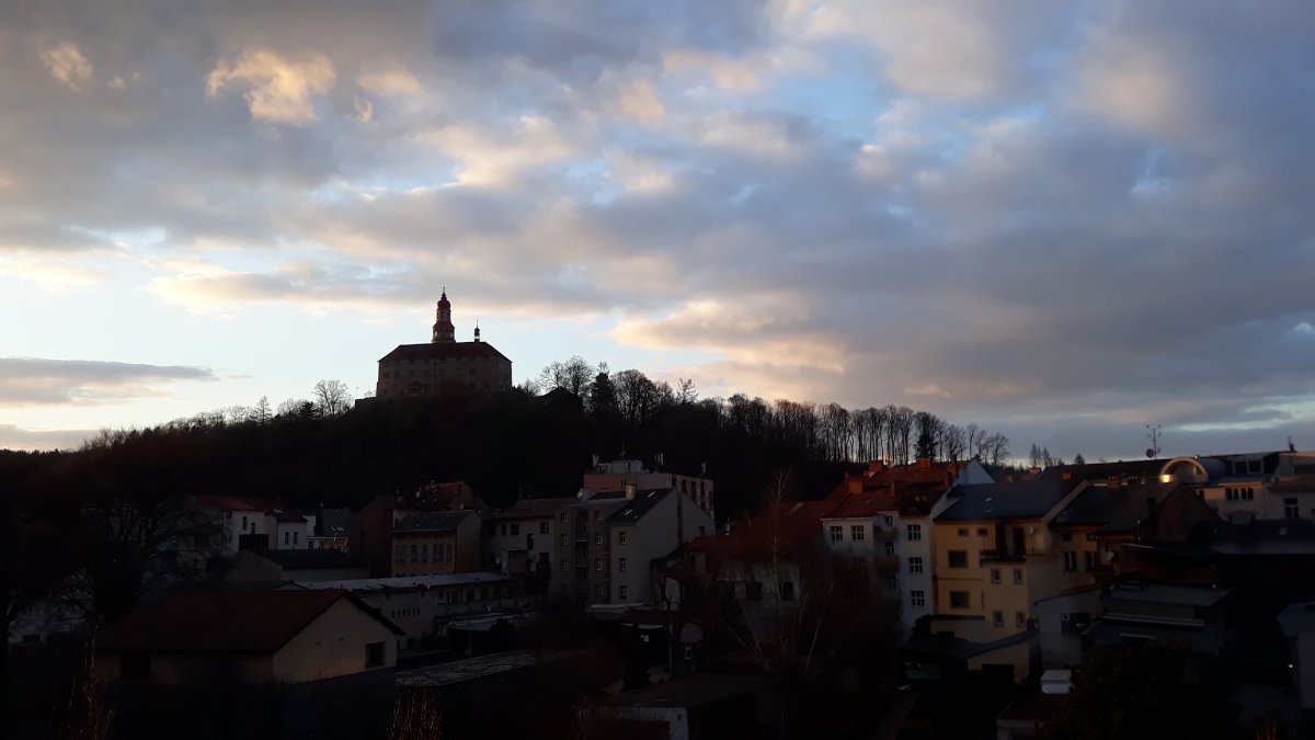 Ráno hodně silný nárazový vítr s přeháňkami deště se sněhem, postupné ubývání oblačnosti i srážek, tišící se vítr, téměř polojasno...