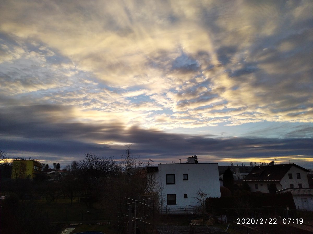 Aktuálně převažuje většinou polooblačno až polojasno a fouká většinou slabý vítr vlhkost 95%