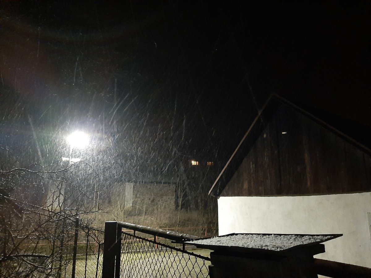 Kojetice u Třebíče, sněhové přeháňky místy se tvoří slabý poprašek