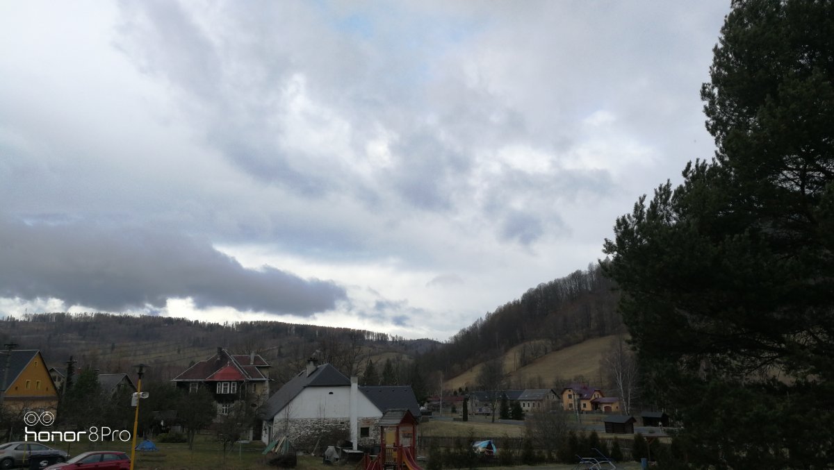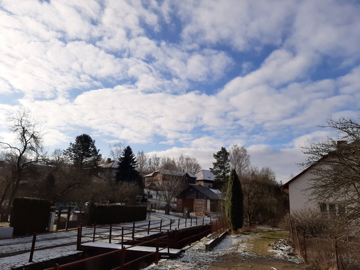 Přízemní mrazík zatím drží noční poprašek při životě, pozvolna plující nízká oblačnost pod téměř stojící vysokou, občasné juknutí sluníčka, při zemi bezvětří...