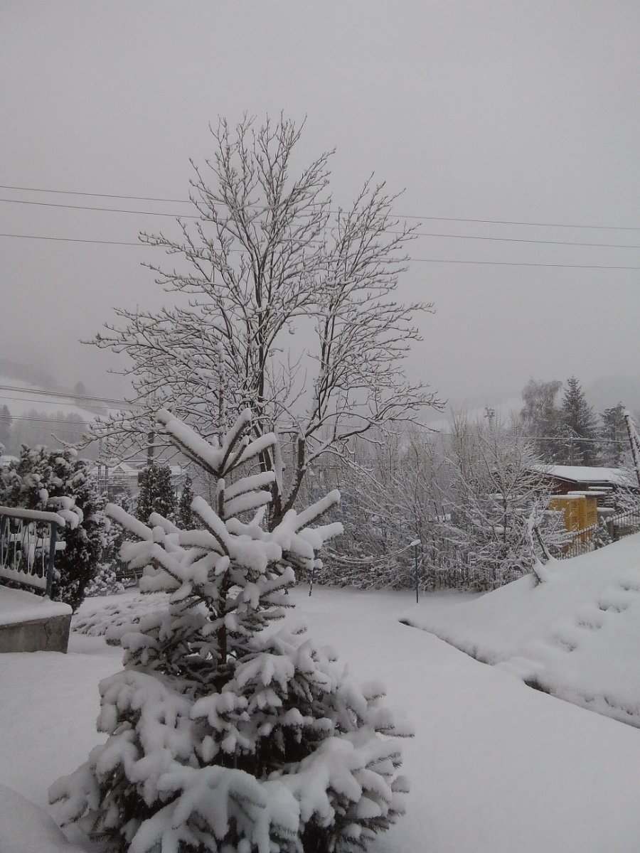 Aktuálně převažuje většinou zataženo a mírně sněží a fouká většinou slabý vítr vlhkost 99%