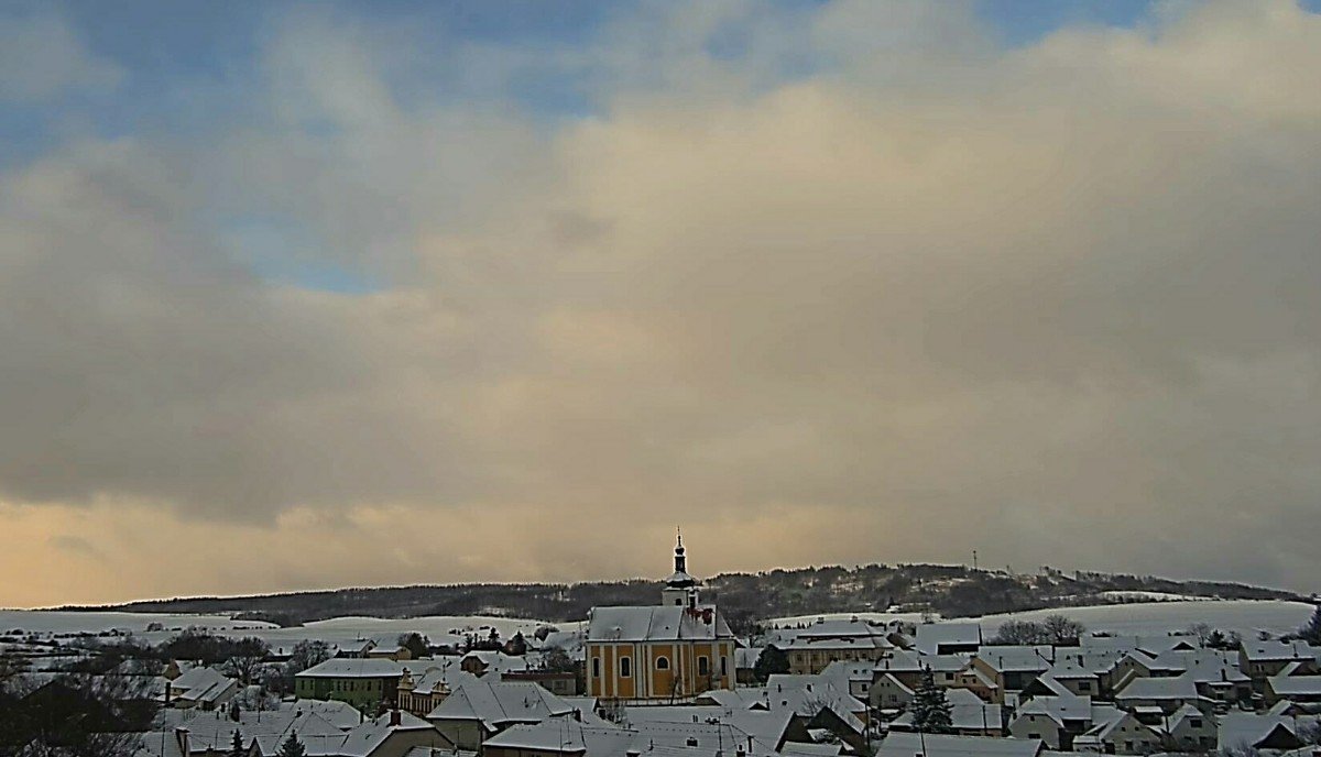 Tak nám trochu nasněžilo,skoro zataženo,fouká mírný vítr,tlak 1012 hPa,vlhkost 78%