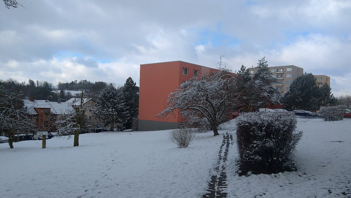 Hustě sněží,tlak 1001hpa,vlhkost 83%,vítr od JV 0-5km/h...