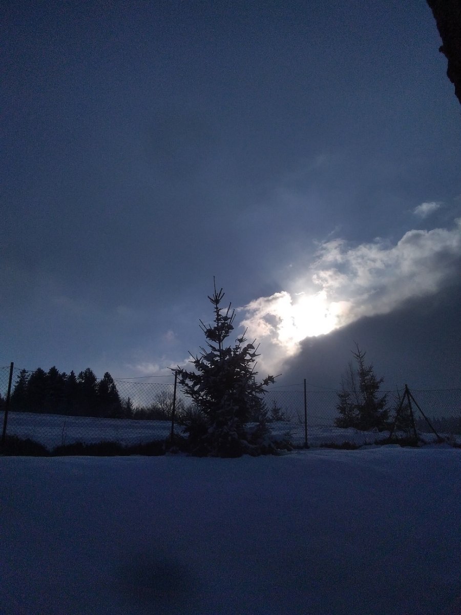 V noci a ráno sněžilo, napadlo 5 cm mokrého sněhu. Dopoledne přišlo ještě pár sněhových přeháněk, ale přes den všechen sníh roztál. Nyní je polojasno, severozápadní vítr 36,2 km/h, tlak 1016,6 hPa, vlhkost 68 %. Dnešní minimum bylo -0,6 °C.