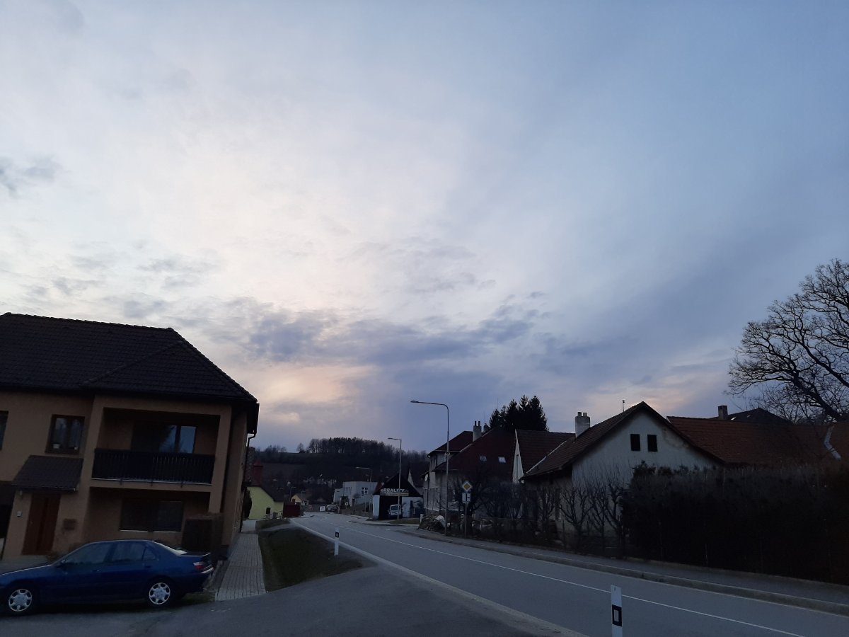 Zapadající sluníčko pozvolna mizí v houstnoucí řídké oblačnosti, 10/10 ,....končí "hezký prosluněný jarní den" , nárazový středně silný vítr utichl do bezvětří...
