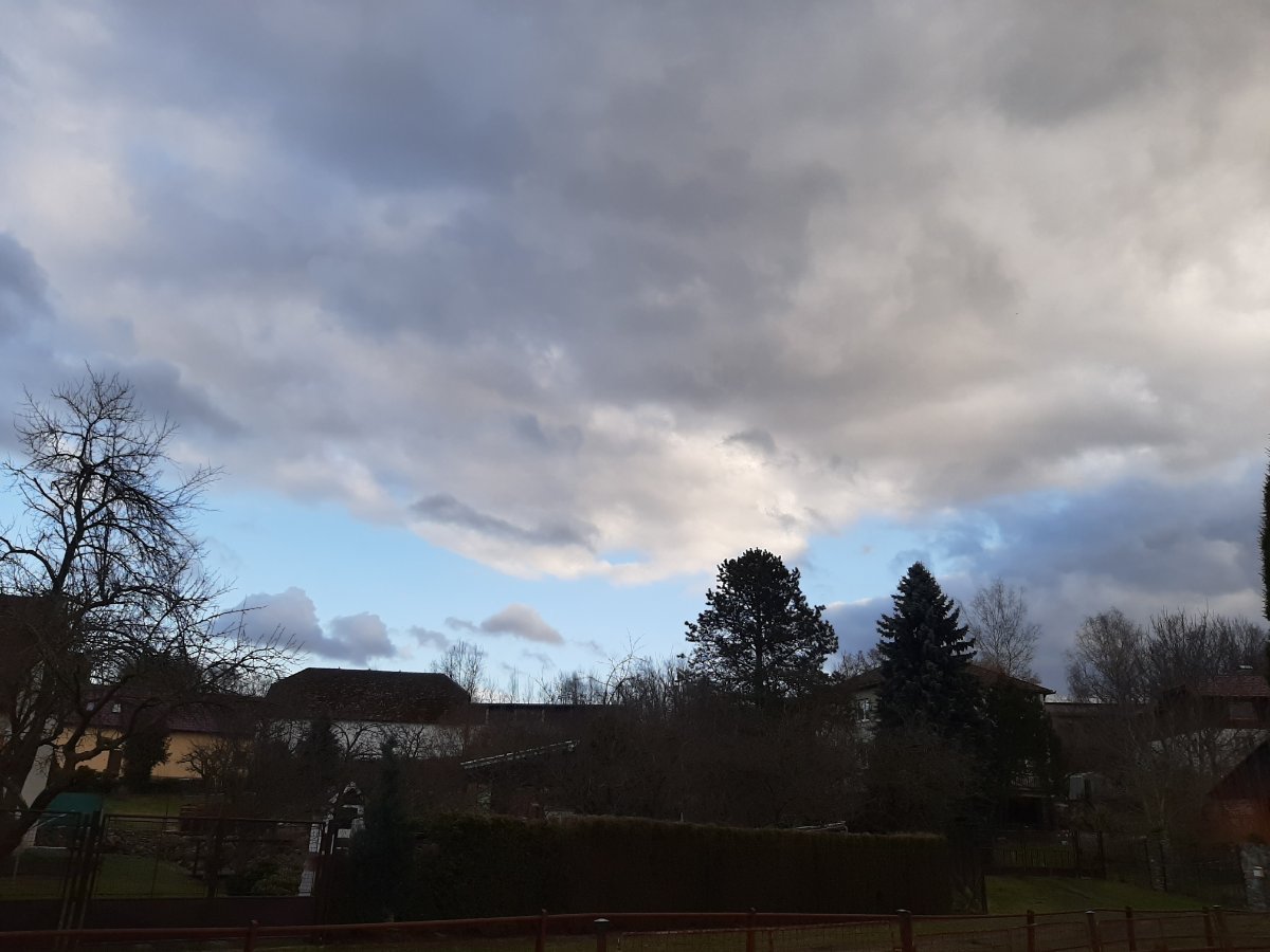 Oblačno až zataženo, tlak 998hPa