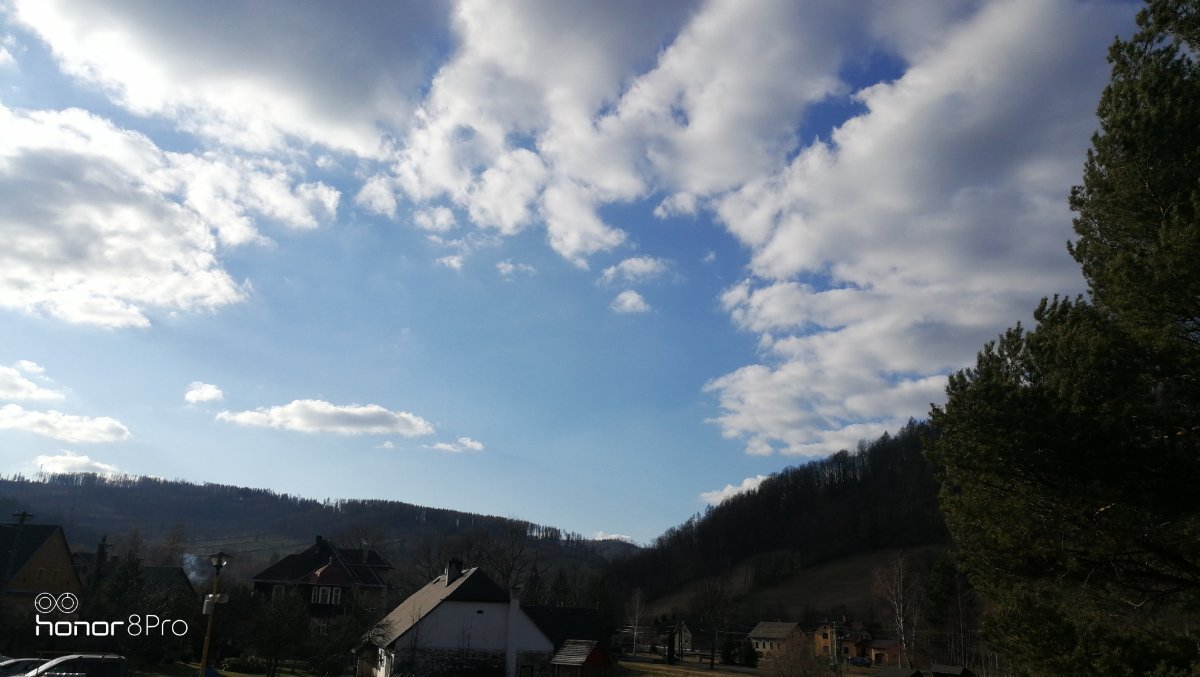 Oblačnost se protrhává,vánek,tlak 1021 hPa,vlhkost 49%