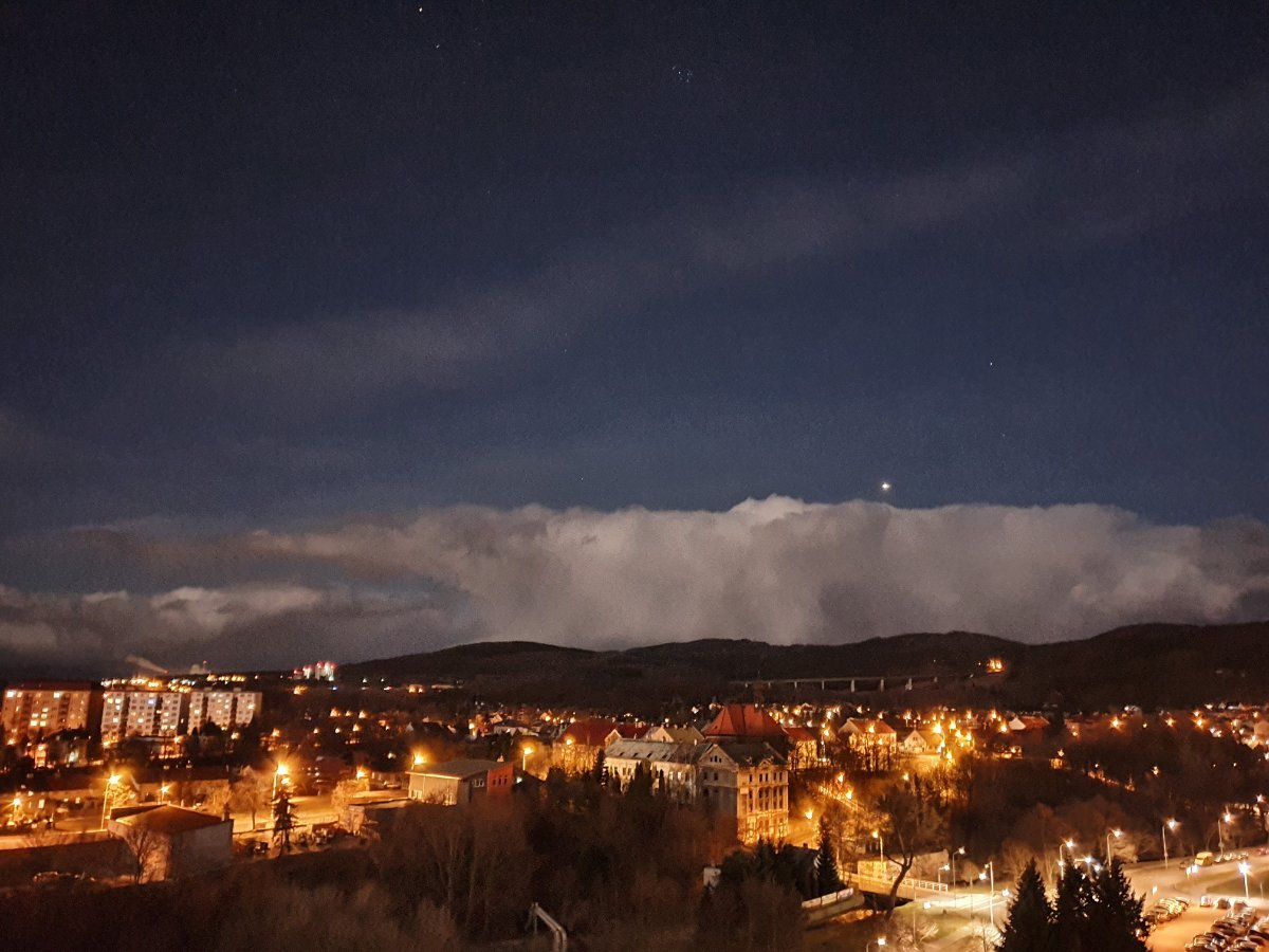 dnes úplněk, skoro jasno, bezvětří, vlhkost 94 %