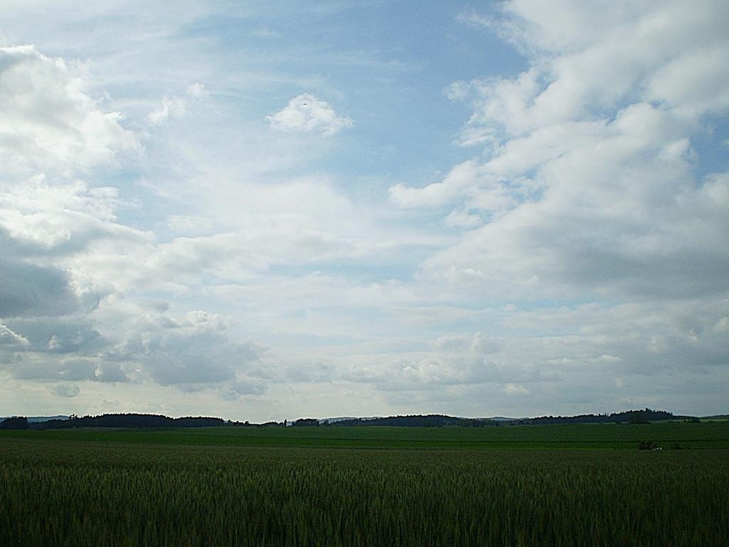 foto z 2013 06 06 v 16:36 - teploměr byl na 21°, neuvěřitelné teploučka - nyní za domem vykukuje tmavý mrak, nad hlavou jasno - uvidíme co bude dál