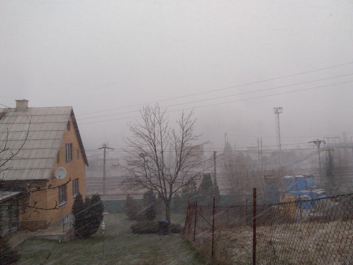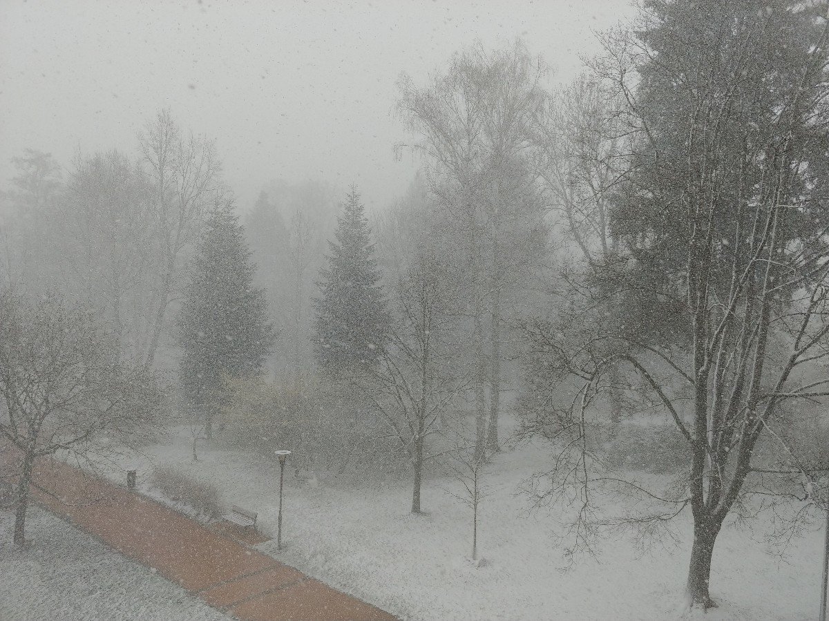 právě sněží, do teď svítilo sluníčko, ale stále fouká vítr