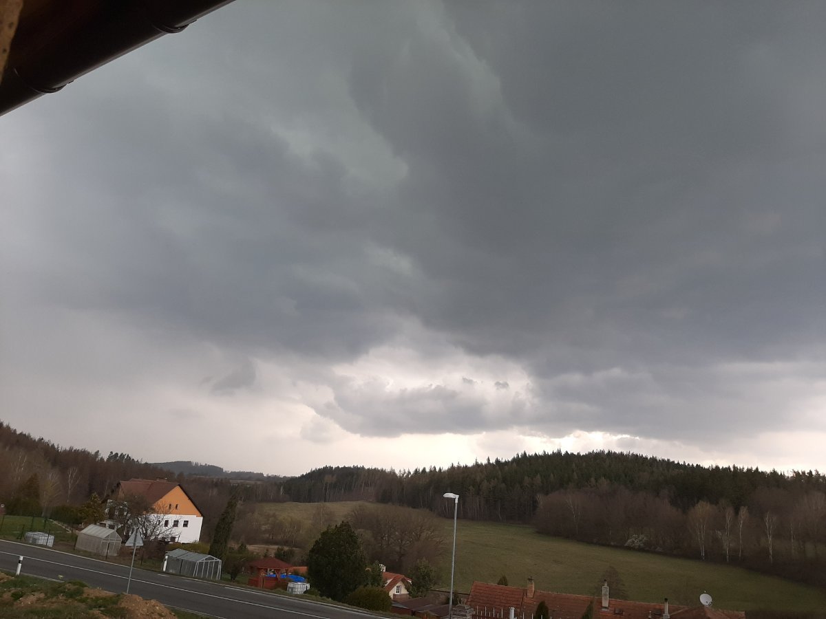 Okolo přechází,přeháňky a slabé bouřky,slabý vítr,tlak 1013 hPa,vlhkost 40%