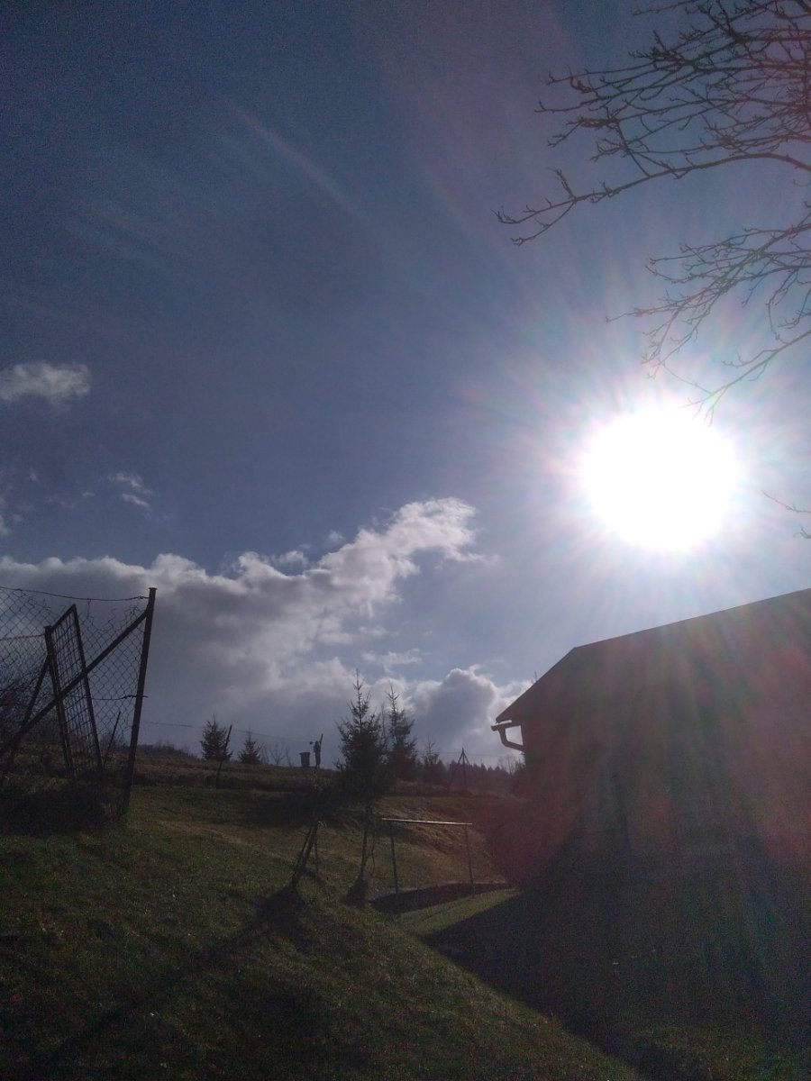 Oblačno, mírný západní vítr, tlak 1019 hPa.