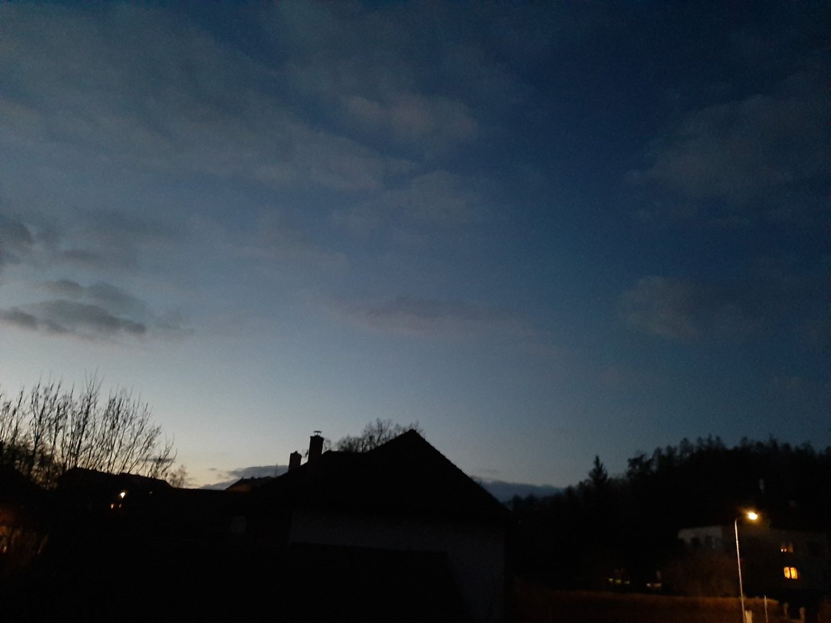 klidno, bezvětří, vlhkost 44%, teplota klesá