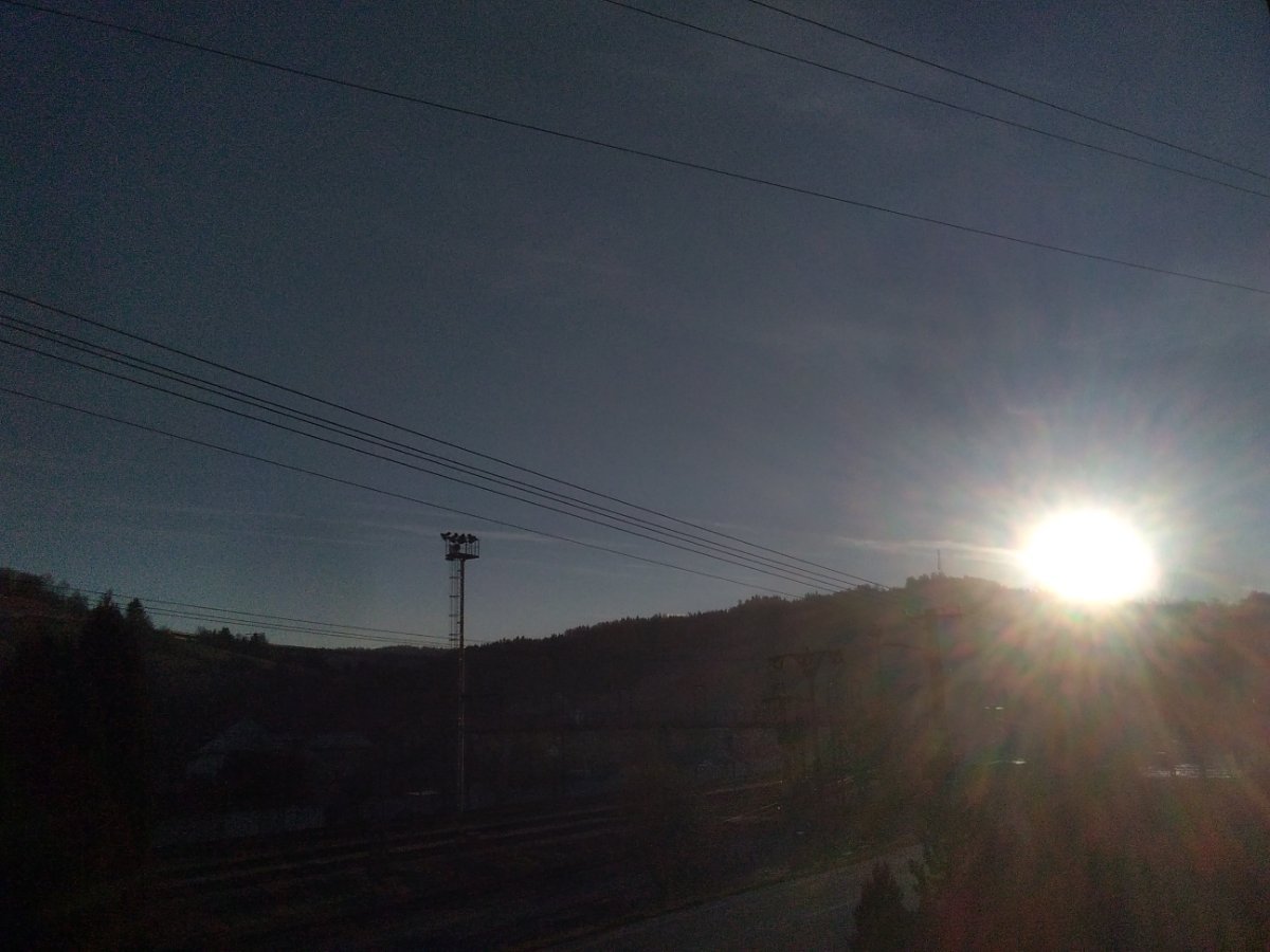 Jasno, na východě mlžný opar