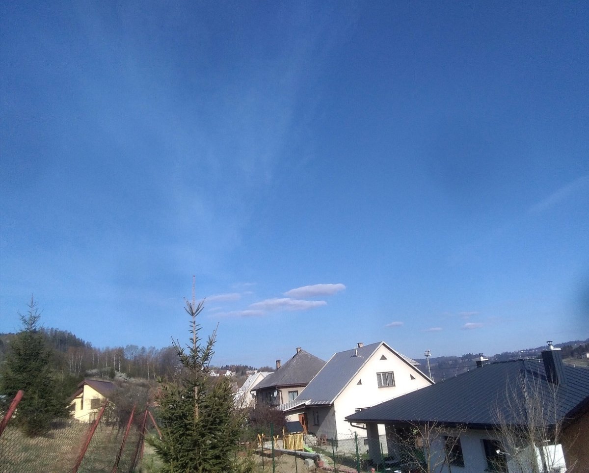 Jasná obloha bez jediného mračku, klidno, bezvětří , slunečno