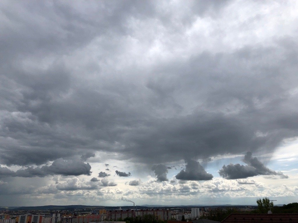 Přestalo pršet,oblačnost se protrhává,vánek,tlak 1010 hPa