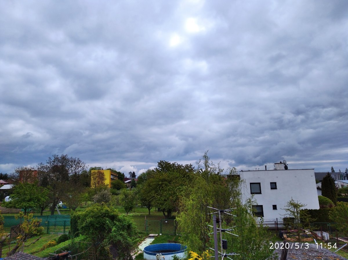 Aktuálně převažuje většinou zataženo a slabounké dešťové přeháňky a fouká většinou slabý až mírný chladný vítr vlhkost 90%