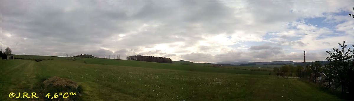 Ráno kolem sedmé hodiny 4 stupně, teď sedm. Nevím kolik bylo v noci ale pod nulu to určitě nešlo. Teď oblačnost a zima