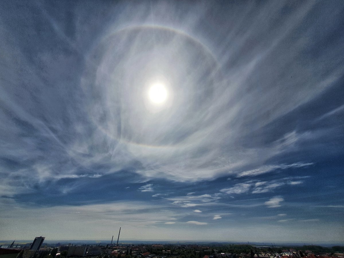 Je oblačno vysokou oblačností a vane slabý vítr.